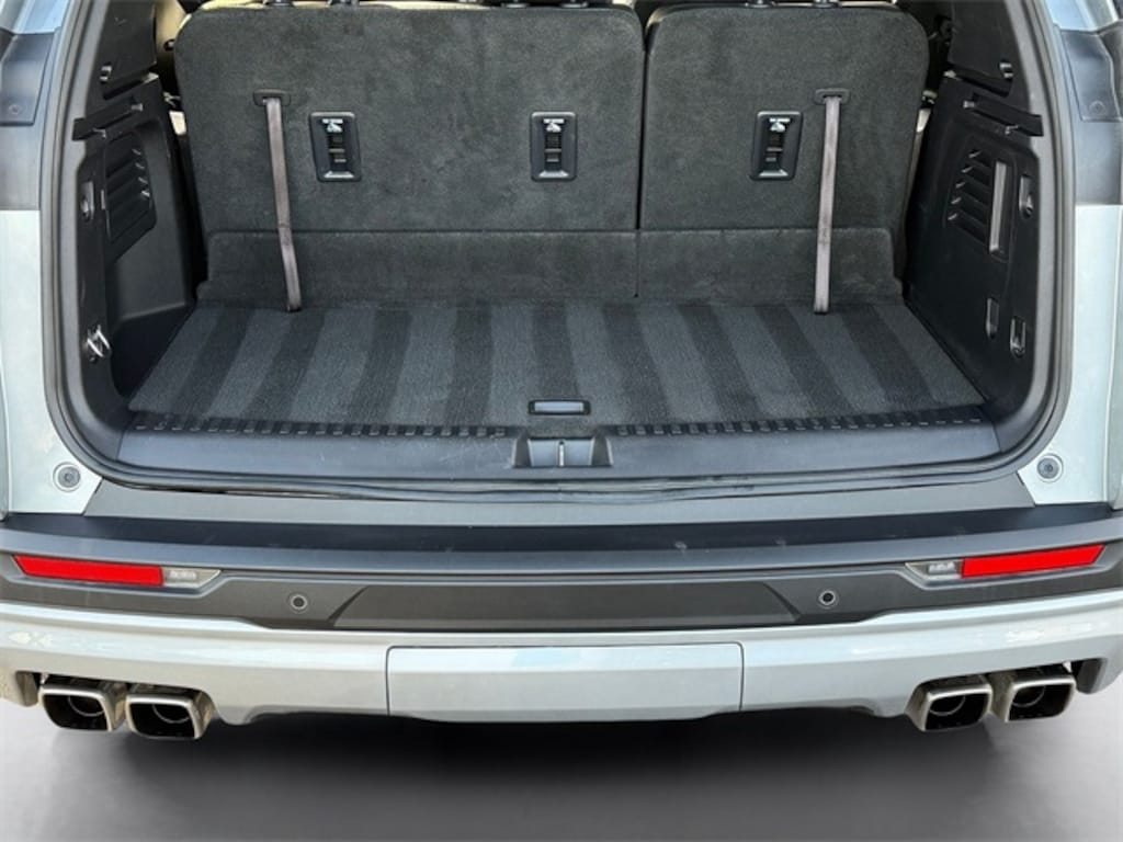 Price may not include recon fee. Cargo Package (LPO) (Cargo Net, Cargo Tray w/Divider (LPO), and Foldable Cargo Organizer (LPO)), Luxury Package (8" Diagonal Head-Up Display, Heated Rear Outboard Seating Positions, Heated Wiper Park, and Laminated Acoustic Glass), Preferred Equipment Group 4SD, AWD, After Dark, 12 Speakers, 3.49 Final Drive Axle Ratio, 3rd row seats: split-bench, 4-Wheel Disc Brakes, 6-Way Power Front Passenger Seat Adjuster, 7-Passenger Seating (2-2-3 Seating Configuration), 8-Way Power Driver Seat Adjuster, ABS brakes, Air Conditioning, Alloy wheels, AM/FM radio: SiriusXM with 360L, Apple CarPlay/Android Auto, Auto High-beam Headlights, Auto-dimming Rear-View mirror, Automatic temperature control, Bodyside moldings, Bose Performance 12-Speaker System w/Sub-woofer, Brake assist, Bumpers: body-color, Compass, CoreTec Seat Trim, Delay-off headlights, Driver 4-Way Power Lumbar Seat Adjuster, Driver door bin, Driver vanity mirror, Dual front impact airbags, Dual front side impact airbags, Electronic Stability Control, Emergency communication system: OnStar and GMC connected services capable, Exterior Parking Camera Rear, Four wheel independent suspension, Front anti-roll bar, Front Bucket Seats, Front Center Armrest, Front dual zone A/C, Front fog lights, Front License Plate Bracket, Front Passenger 4-Way Power Lumbar Seat Adjuster, Front reading lights, Fully automatic headlights, Garage door transmitter, Heated door mirrors, Heated Driver & Front Passenger Seats, Heated front seats, Heated steering wheel, Illuminated entry, Leather steering wheel, Low tire pressure warning, Navigation System, Not Equipped w/Heated Wiper Park, Occupant sensing airbag, Outside temperature display, Overhead airbag, Overhead console, Panic alarm, Passenger door bin, Passenger vanity mirror, Power door mirrors, Power driver seat, Power Liftgate, Power passenger seat, Power steering, Power windows, Radio data system, Radio: 15" Premium GMC Infotainment System, Rear air conditioning, Rear anti-roll bar, Rear reading lights, Rear side impact airbag, Rear window defroster, Rear window wiper, Remote keyless entry, Security system, SiriusXM w/360L, Speed control, Speed-sensing steering, Split folding rear seat, Spoiler, Sport steering wheel, Steering wheel mounted audio controls, Tachometer, Telescoping steering wheel, Tilt steering wheel, Traction control, Trip computer, Turn signal indicator mirrors, Variably intermittent wipers, Voltmeter, and Wheels: 20" x 8" Bright Silver Aluminum.